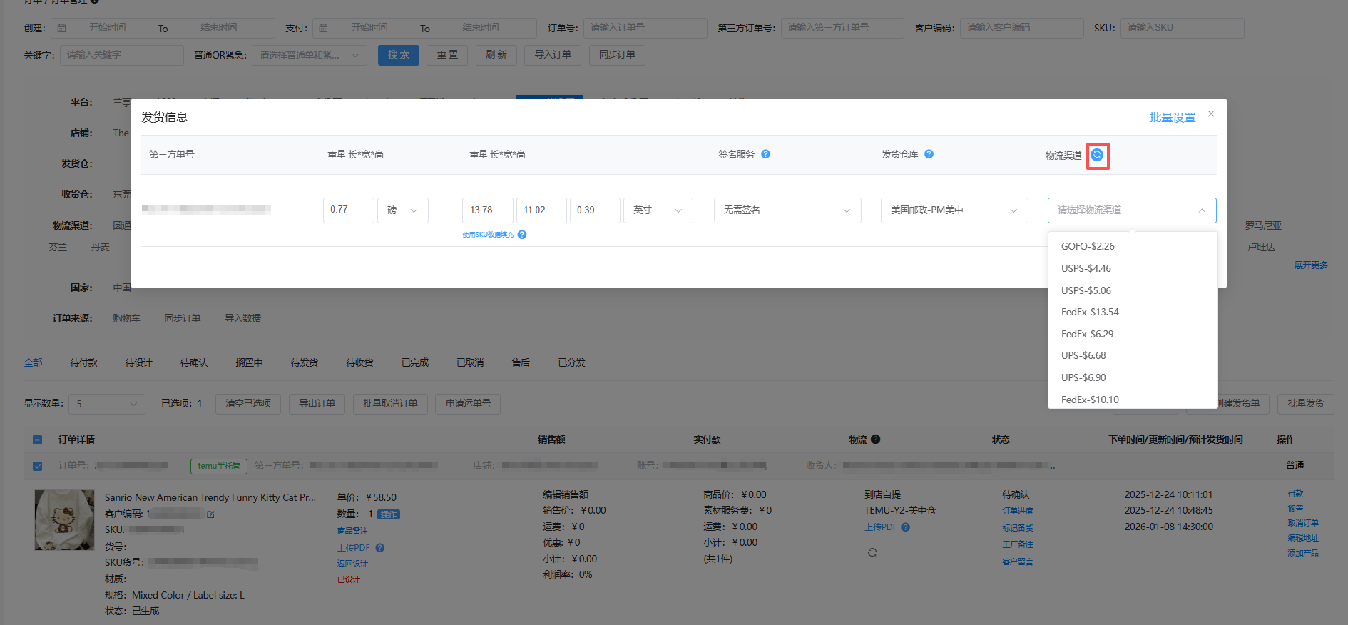 注意:如果您修改了發(fā)貨信息(如重量尺寸),務(wù)必刷新【物流渠道】列表以獲取更新后的可選渠道。