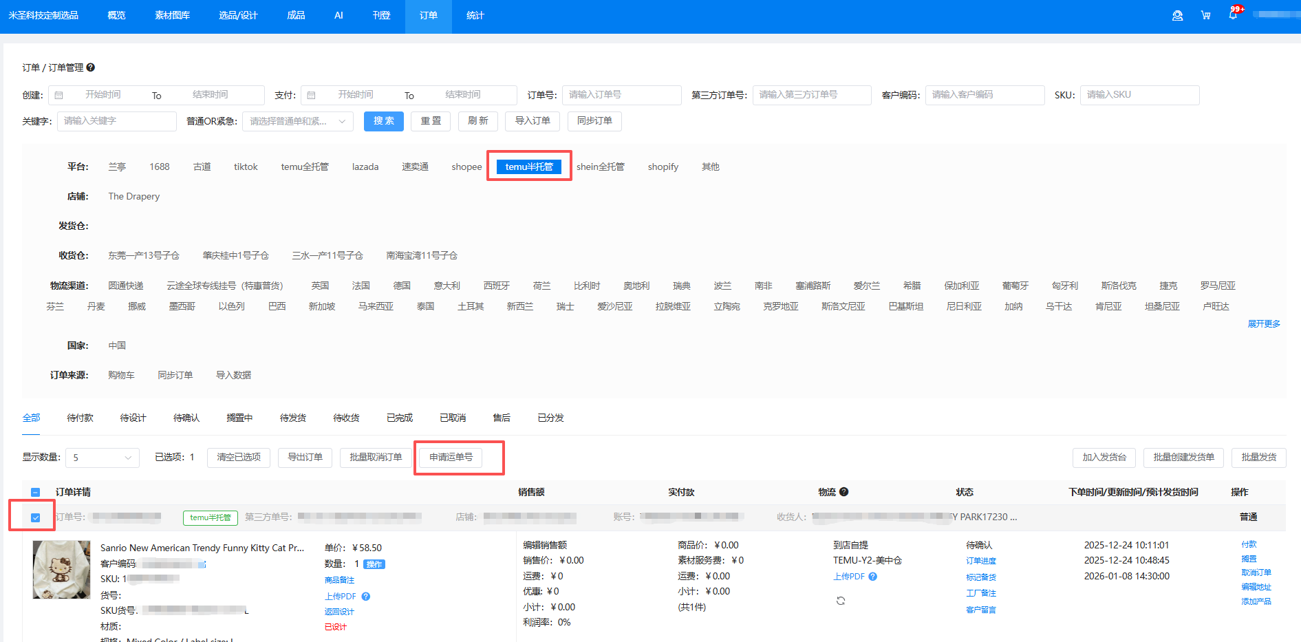 平臺:選擇“temu半托管”。