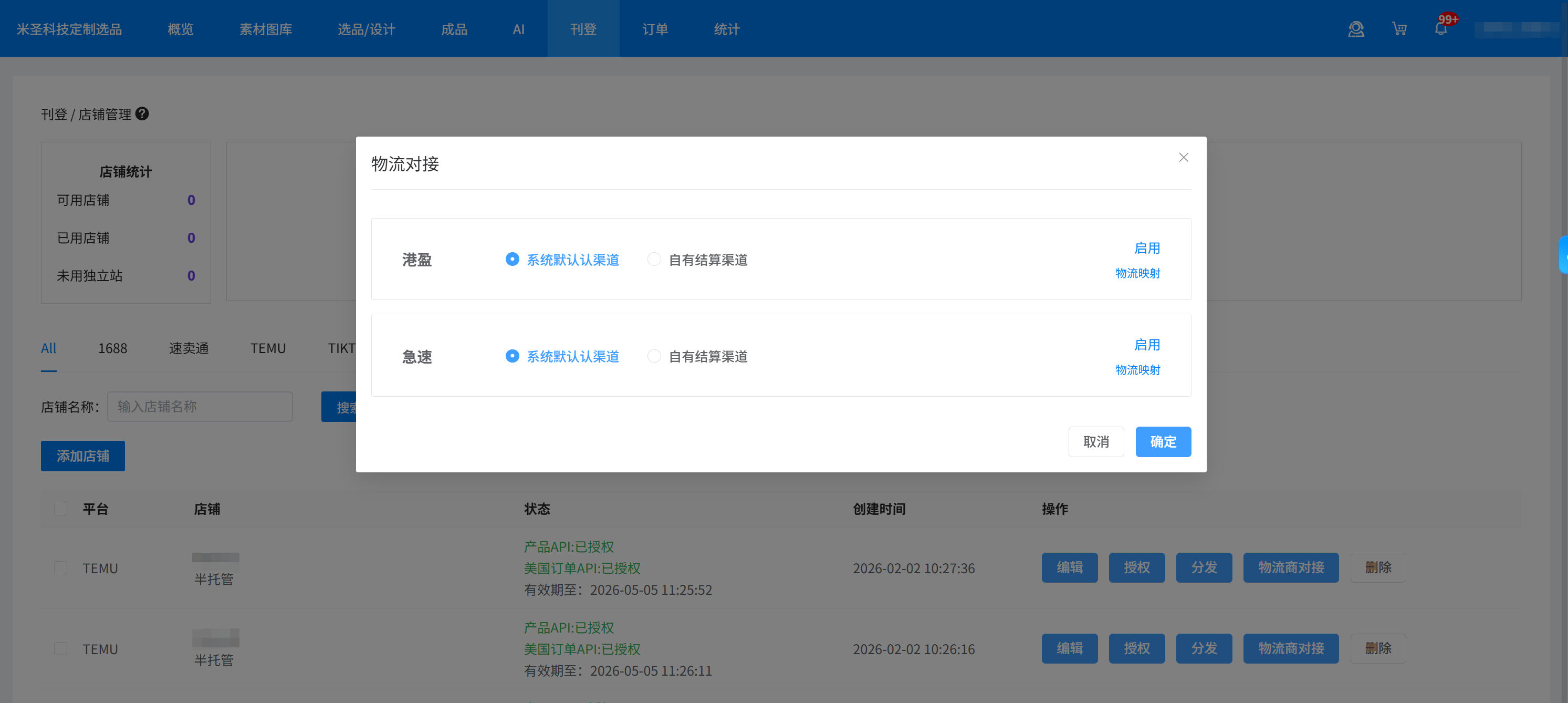 在【店鋪管理】頁面,找到對應(yīng)的temu半托管店鋪點擊【物流商對接】。