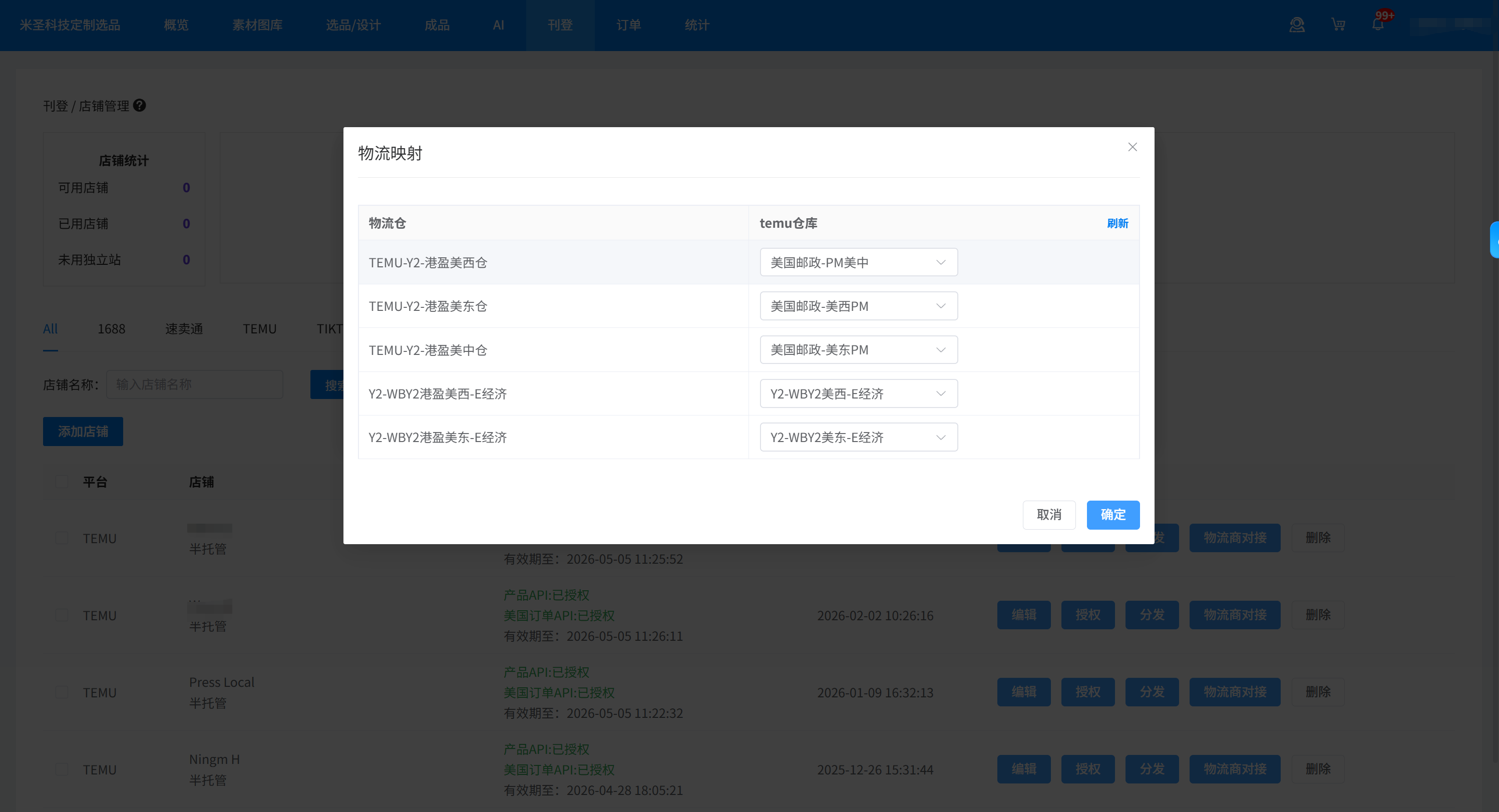 將系統(tǒng)的物流倉與您在Temu平臺店鋪后臺已創(chuàng)建好的倉庫建立映射關(guān)系。